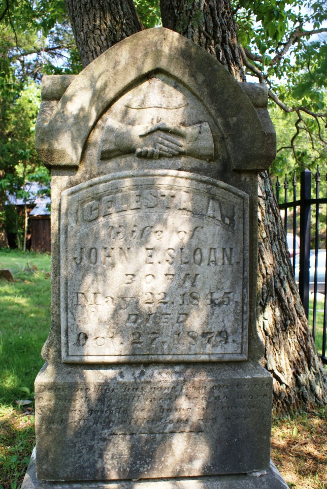 Recently, I was showing a colleague the photos of the old stone and the new stone and he questioned whether the stone looked like it was from 1865. The material the stone appears to be made of, the style of the stone and the fact that it is on a base all raised his suspicions. After thinking about it, I believe I agree; this stone is not from 1865. Nearby, in the same family plot is the stone of James and Malinda’s son, David B. Suddarth. I do not have a good picture of the whole stone, but here is a picture of the family plot:
